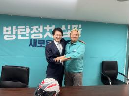 (左)김만흠 새로운미래 정책위 위원장, (右) 김남훈 이륜자동차 특보 / 제공:새로운미래 (DB 및 판매금지) 22년 차 프로레슬러 김남훈이 원내 정당인 새로운미래의 '이륜자동차' 특보로 임명되었다.&n…
