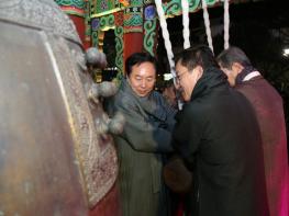 안동시가 31일 웅부공원 시민의 종각에서 한해를 마무리하고 2024년 새해를 맞이하는 제야의 종 타종행사를 개최했다. 이날 타종행사는 축하공연과 레크레이션을 시작으로 취타대 행진, 신년휘호 퍼포먼스,