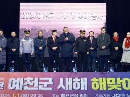 예천군은 1일 오전 6시 30분 군청 광장에서 예천청년회의소 주관으로 군민 화합과 안녕을 기원하는 해맞이 행사를 진행했다.이날 행사에는 김학동 예천군수, 최병욱 예천군의회 의장, 도기욱, 이형식 경상북