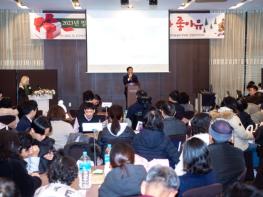 밀알한마음쉼터는 27일 제천 그랜드컨벤션센터에서 이용자, 봉사자와 후원자들이 참석한 가운데 ‘2023년 송년회’행사를 개최했다.마술쇼를 시작으로 시상식, 2023년 사업 보고, 난타 공연, 연극 순으로 진