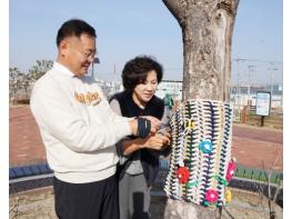 칠곡군 석적읍 주민들이 겨울철 황량한 거리를 따뜻하게 바꾸기 위해 두 팔을 걷어붙였다. 석적읍사무소는 지난 9일 중리 섬내공원과 남율리 일원의 가로수에 겨울옷을 입히는 행사를 열었다. 여기에 사용된