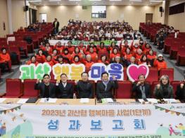 충북 괴산군은 지난 7일 유기농업연구소에서 5개 마을 주민 150여 명이 참석한 가운데 ‘2023년 괴산형 행복마을사업 성과보고회’를 개최했다.이번 성과보고회는 2023년 1단계 5개 행복마을의 사업별 추진