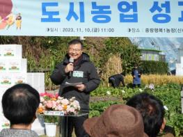 중랑구가 10일 오전, 중랑행복1농장에서 사랑의 김장나눔 행사와 함께 도시농업 성과 공유회를 개최했다.중랑도시농업협동조합의 주최로 진행된 이번 행사에는 류경기 중랑구청장과 정현호 중랑도시농업협동
