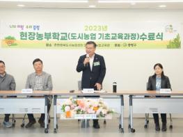 중랑구가 3일 오전, 신내동 청남공원 내 중랑행복도시농업센터에서 ‘제2기 현장농부학교 수료식’을 개최했다.현장농부학교는 도시농업 기초교육과정으로서 농업기초지식과 기초영농교육을 배울 수 있는 프