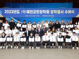 재단법인 예천군민장학회는 지난 27일 오후 5시 예천군청 대강당에서 2023년도 장학금 및 포상금 수여식을 개최했다.이날 수여식은 학생 및 보호자, 교사, 장학회 이·감사 등 40여 명이 참석한 가운데 김학