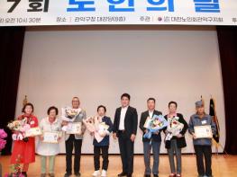 “귀하는 평소 희생과 봉사정신으로 경로효친사상을 실천하여 왔을 뿐만 아니라 특히 어르신복지 증진에 기여한 공이 크므로 제27회 노인의 날을 맞이하여 이에 표창합니다.”관악구가 제27회 노인의 날(10