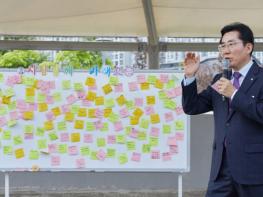 박경귀 아산시장이 지난 13일 둔포중앙공원 무대에서 열린 ‘제2회 모여라 둔포(둔포 벼룩시장·착한프리마켓)’ 행사에 참석해 주민들과의 토크콘서트 시간을 가졌다.가정의 달을 맞아 둔포발전추진위원회
