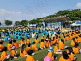 군산시 지역아동센터 어린이 한마음축제가 지난 13일 군산 금강체육공원 축구장에서 성황리에 마쳤다.그간 코로나19로 인해 실내에서 진행했으나, 올해는 야외에서 관내 지역아동센터 아동 및 종사자들 약 1