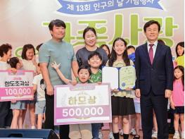 진주시는 10일 시청 시민홀에서 ‘제13회 인구의 날 기념행사’를 가졌다.이번 인구의 날 기념행사는 ‘키우는 기쁨 행복한 육아’ 아이디어 공모전 수상작 시상, ‘가족사랑 동요대회’, ‘진주 같은 우리