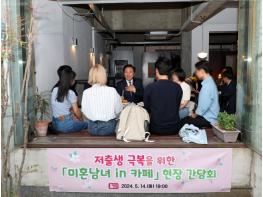 권기창 안동시장은 저출생 극복을 위해 5월 14일 안동시 미혼남녀 프로그램 참가자들과 함께 '미혼남녀 in 카페' 현장간담회를 실시했다. 참석자는 지난 4월 실시된 미혼남녀 프로그램 참가자 중 희망자를