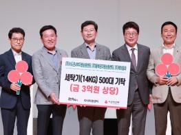 용인특례시는 24일 오후 시청 에이스홀에서 ㈜수도권서부자원순환센터, ㈜케이알씨, ㈜동북권자원순환센터, 경기사회복지공동모금회와 ‘리사이클센터 세탁기 기부 행사’를 열었다.‘아름다운 동행’이라는