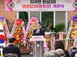 충남 서산시는 27일 지곡면 환성3길 137 일원에서 환성3리 경로당 개관식을 개최했다고 밝혔다.이날 행사에는 이완섭 서산시장, 서산시의원, 지곡면 사회단체장을 비롯한 마을 주민 100여 명이 참석해 환성3
