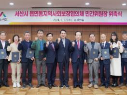 충남 서산시가 27일 시청 중회의실에서 제5기 읍면동 지역사회보장협의체 민간위원장 15명을 위촉했다고 밝혔다.읍면동 지역사회보장협의체는 지역 복지 활성화를 위해 읍면동별 여건에 따라 12~18명으로 구