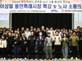 이상일 용인특례시장이 28일 기흥구 ICT밸리컨밴션에서 열린 ‘용인시 공무원노사소통 활성화 워크숍’에서 ‘비싼 그림 이유 있다’를 주제로 특강을 했다.이 시장은 레오나르도 다빈치의 ‘살바토르 문디(
