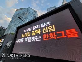 일부 한화 팬들의 메시지 '아무도 찾지 않는 노(老) 감독 선임. 시대를 역행하는 한화그룹' (사진=고초록 기자)…