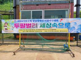 10일 경기도 김포시 전호야구장에서 열린'제2회 이만수배 발달장애인 티볼야구대회' 현수막 (사진=고초록 기자)…