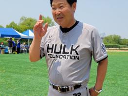 10일 경기도 김포시 전호야구장에서 열린'제2회 이만수배 발달장애인 티볼야구대회'에서 포즈를 취하는이만수 헐크파운데이션 이사장 (사진=고초록 기자)…
