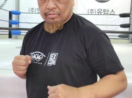 오늘(31일) 김포 WWA 오피셜 짐에서 열린'NKPWA 34 THE ROAD OF SPRING' 대회에서 윤강철 신한국 프로레슬링 대표가 포즈를 취하고 있다.사진=고초록 기자…