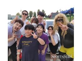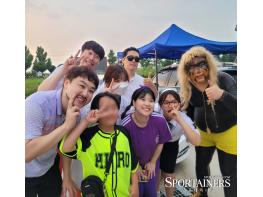 어제(24일) 경기도 평택에서 열린 'PWS-EXTREME HEAT'쇼를 마치고 팬들과 함께 사진을 찍고 있는 유튜브 '급식왕' 팀(사진=고초록 기자)…