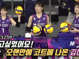 [인천=스포테이너즈] 지난 여름 어깨 부상을 당하여 장기간 치료 및 재활 중이던 김다은(흥국생명)이 지난 9일, 오랜만에 코트에 등장했다.김다은은 경기에는 뛰지 못했지만 팀 동료들의 워밍업…
