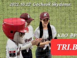 [서울=스포테이너즈] 그룹 트라이비 (TRI.BE)의 송선과 켈리가 10월 22일 서울 고척 스카이돔에서 열린 2022 KBO 포스트시즌 준플레이오프 5차전 '키움 vs KT'전에 앞서 시구와 시타를 하고 있다. #트라이비…