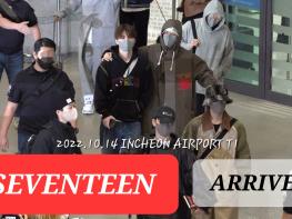 [인천=스포테이너즈] 그룹 세븐틴(SEVENTEEN)이 월드투어 'BE THE SUN' 싱가포르에서의 콘서트를 마치고 14일 오후 인천국제공항 1터미널을 통해 입국하고 있다. …