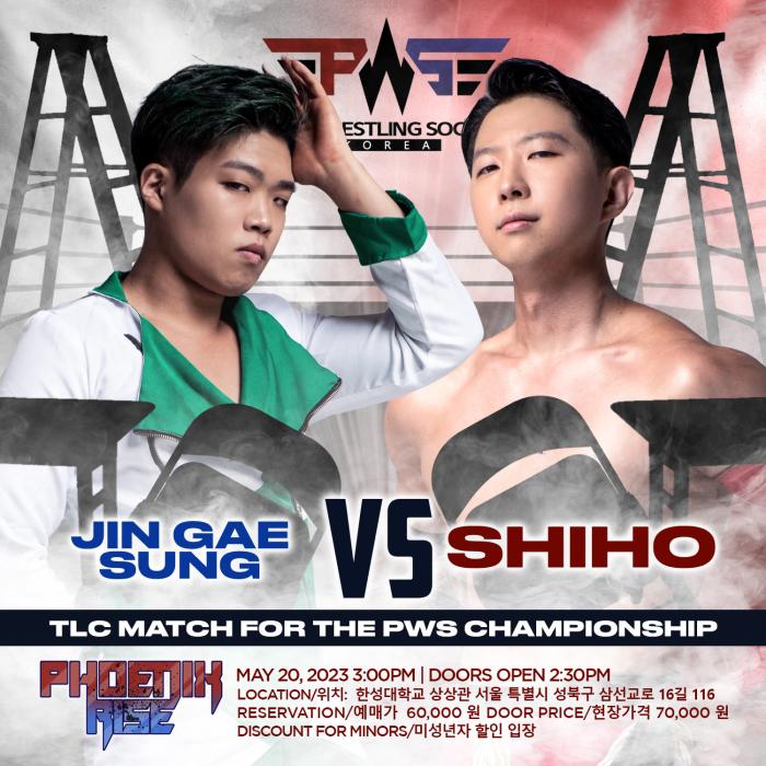 메인이벤트는 PWS 챔피언십 경기로 現 PWS 챔피언 시호가 도전자 진개성을 상대로 테이블과 사다리, 의자를 합법적으로 사용하는 'TLC 매치'룰로 방어전을 치른다.