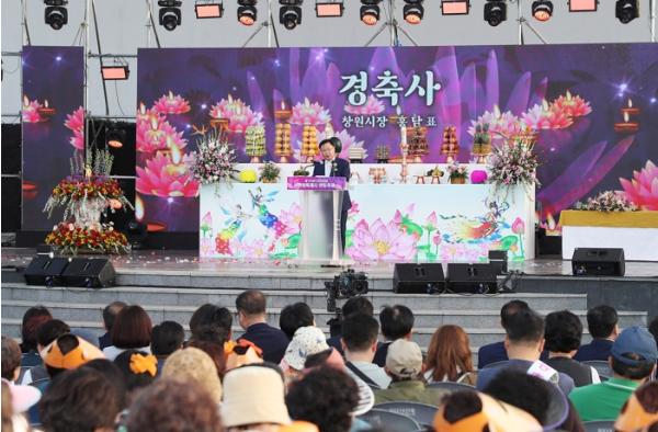 이날 홍남표 창원특례시장, 김이근 창원특례시의회 의장, 정길상 창원특례시 문화환경도시위원회 등 내외빈과 불자, 시민 등 3,000여 명이 참석해 부처님오신날 맞이 봉축음악회를 축하했다.