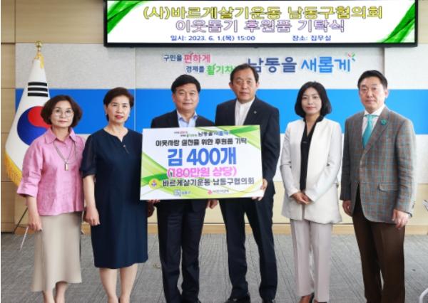 인천시 남동구는 최근 바르게살기운동 남동구협의회로부터 이웃돕기 김 세트 400개(180만 원 상당)를 기탁받았다고 2일 밝혔다.