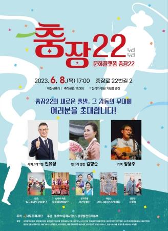 특히 이번 행사에서는 충장22 새 위탁 기관으로 선정된 (사)대동문화재단이 원도심 충장로의 발전을 견인하는 허브 역할을 해온 충장22의 새로운 도약을 위해 다양한 프로그램을 통해 삶의 질을 높이고 지역 사회와 함께 문화를 즐길 수 있는 시민문화마당을 만들어 나가겠다는 결의를 다지는 비전 선포식도 거행할 계획이다.