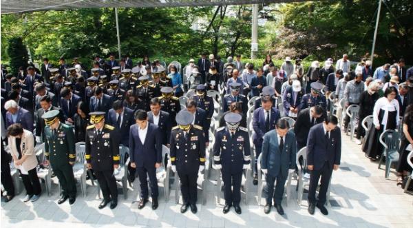 추모 묵념을 시작으로 헌화와 분향, 추념사, 헌시 낭송, 현충일 노래 제창 순으로 엄숙히 진행됐다.