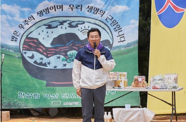 박경귀 아산시장이 10일 도고면 화천리에 위치한 BCPF콘텐츠학교에서 열린 ‘한살림(아산) 풍년기원 단오잔치 한마당’에 참석했다.