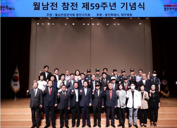 용인특례시는 월남전참전자회 용인시지회가 월남전 참전 제59주년 및 해외 파병용사의 날을 맞아 14일 용인시청 에이스홀에서 기념식을 개최했다고 15일 밝혔다.