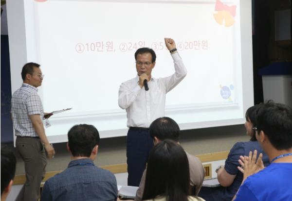 KBS의 ‘도전 골든벨’ 형식을 빌려 팀과 개인으로 나눠 서바이벌 퀴즈로 최후까지 남은 1인과 가장 많은 문제를 맞춘 팀이 각각 우승하는 것으로, 그간 당면 업무로 지친 직원들이 모처럼 업무를 떠나 청렴이란 공직자의 기본 소양을 다시 한번 되새기는 뜻깊은 시간을 가졌다.