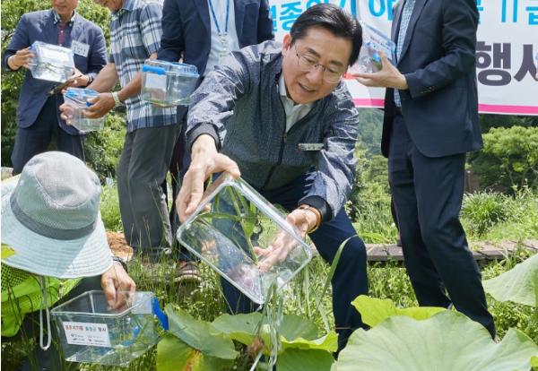 아산시, 송악면 반딧불이 서식지에 멸종위기종 물장군 70개체 방사