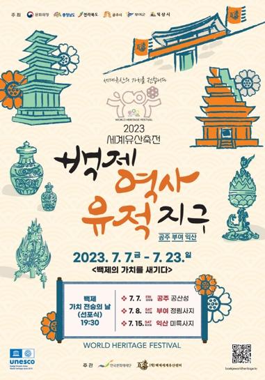 문화재청이 추진하는 세계유산축전은 백제역사유적지구 세계유산을 보유한 공주시, 부여군, 익산시, 충청남도, 전라북도가 공동으로 시행하는 행사이다.