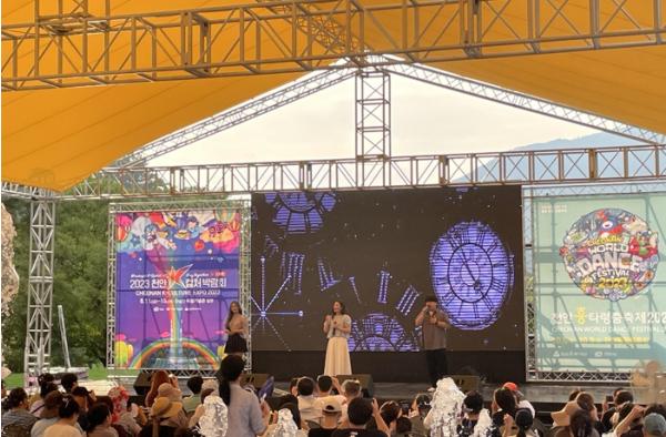 ‘2023 천안 K-컬처 박람회’ 개막이 10일 앞으로 다가온 가운데 성공적인 개최와 사전 홍보를 위한 문화예술 공연 붐업(Boom-up) 페스타 ‘썸머콘서트 인 천안(Summer concert in Cheonan)’이 독립기념관 웰컴존 분수광장 특별무대에서 진행되고 있다.