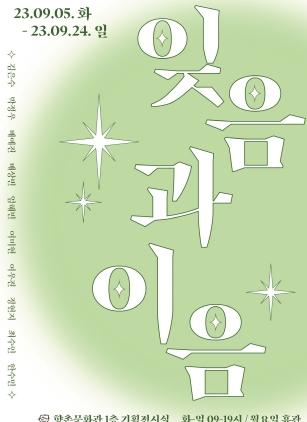 ‘잊음과 이음’은 정형화된 한국화를 벗어나고자 한 20대 청년 한국화 화가들에 의해 기획됐다. 전통적인 요소를 기반으로 작가들이 마주한 현대 사회의 여러 소재를 결합해 한국화의 다양한 면모를 보여준다. 이번 전시에는 경북대학교 한국화 동아리 ‘순’의 작가 총 10명(김은수, 박정우, 배예진, 배상빈, 염혜빈, 여미현, 여우진, 정현지, 최수인, 한수민)이 참여한다.