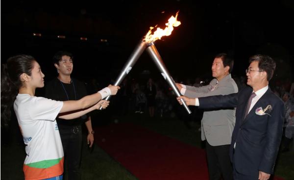 이날 개회식은 김태흠 지사를 비롯해 박범인 금산군수, 김지철 도 교육감, 김영범 도 체육회장, 선수단, 도민 등 1만 3000여 명이 참석한 가운데, △선수단 입장 △개회선언 △대회기 게양 △선수·심판 대표 선서 △성화점화 △축하공연 순으로 진행됐다.