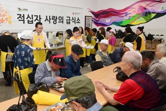 이날 이재호 구청장과 대한적십자인천지사봉사회 연수구지구협의회 회원들이 함께 앞치마를 두르고 식사 준비와 배식 봉사에 적극 나서 훈훈한 현장 분위기를 자아냈다.