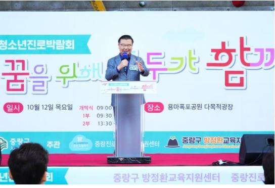 류경기 중랑구청장은 “많은 경험을 쌓고 그 경험을 토대로 자신의 미래를 직접 설계하기 시작하는 중학교 학생들에게 이번 진로박람회가 뜻깊은 시간이었길 바란다”라며 “앞으로도 학생들이 다양한 꿈을 꿀 수 있도록 실질적인 도움을 줄 수 있는 프로그램들을 계속해서 마련해 가겠다”라고 말했다.