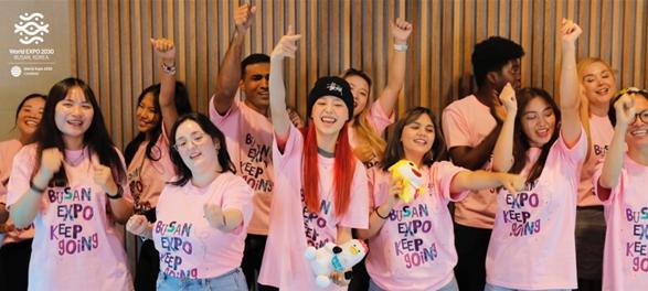부산시는 오늘(16일) 인기가수 츄(CHUU)와 2030부산세계박람회 글로벌 서포터즈가 엑스포 응원송 ‘킵 고잉(Keep Going)’을 함께 부르는 모습을 담은 합창영상을 공개한다고 밝혔다.
