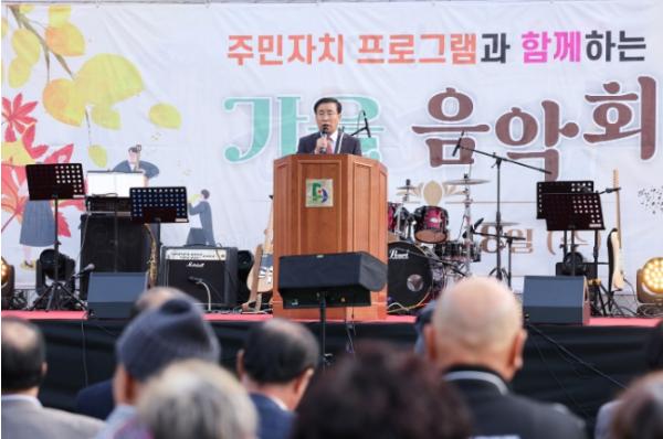 단양군 대강면주민자치위원회가 지난 18일 대강면 체육공원에서 주민자치프로그램과 함께하는 가을 음악회를 열어 눈길을 끌었다.