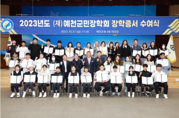 재단법인 예천군민장학회는 지난 27일 오후 5시 예천군청 대강당에서 2023년도 장학금 및 포상금 수여식을 개최했다.