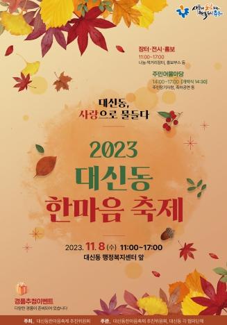 대구 중구 대신동행정복지센터는 8일 대신동 행정복지센터 (달구벌대로389길 50) 앞 야외무대에서 주민들이 함께 만들고 즐기는 ‘2023 대신동 한마음 축제’를 개최한다.