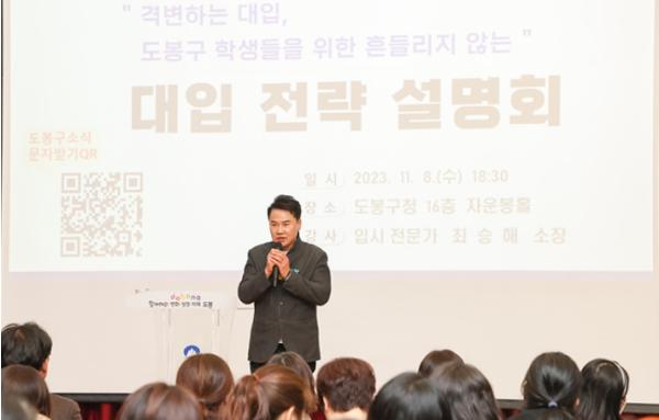 오후에는 입시 전문가 ‘입시왕 펜타킬’ 최승해 소장의 ‘격변하는 대입, 도봉구 학생들을 위한 흔들리지 않는 대입 전략’이라는 주제의 ‘대입설명회’가 펼쳐져 학부모들의 큰 호응을 받았다.