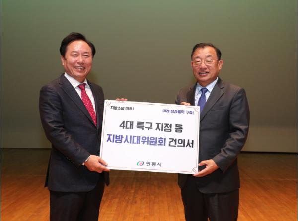 시는 이번 특강을 맞이해 지방시대 성공 염원을 담아 이정현 지방시대위원회 부위원장에게 지역소멸 대응 및 미래 성장동력 확보를 위한 바이오·헬스 기회발전특구, K-문화특구, Hemp 글로벌 혁신특구, 교육발전 특구 안동 지정 등 4대 건의 사항을 전달했다.