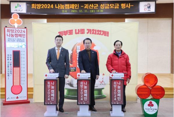 충북 괴산군은 지난 11일 충북사회복지공동모금회와 ‘기부로 나를 가치있게, 기부로 괴산을 가치있게!’라는 슬로건 아래 ‘희망2024 나눔캠페인’ 괴산군 성금모금 행사를 개최했다.