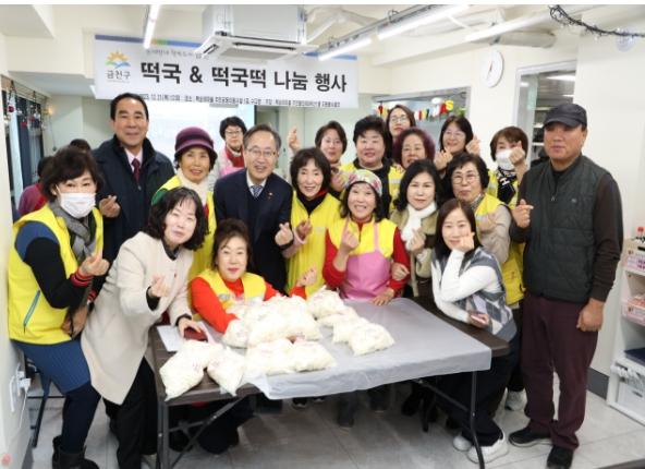 금천구는 12월 21일 독산1동 자원봉사캠프가 독산1동 복숭아마을 주민협의체와 함께 어르신과 복지 취약계층에게 떡국 나눔 행사를 개최했다고 밝혔다.