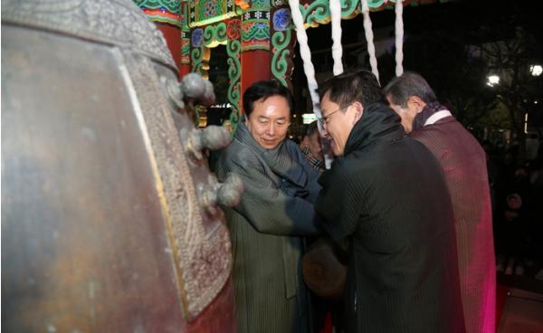 타종식에서는 시민의 안녕과 화합을 기원하며 각계각층 50여 명의인사들이 1개조 4~7명씩 총 11개로 편성돼, 무사 안녕을 염원하는 33번의 타종과 함께 희망찬 새해를 맞이했다.